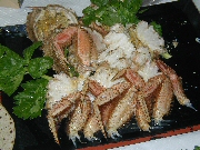 夕食の肴−ホッケの開き、毛ガニ、おかずのイクラでいくら丼