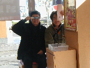柱の影でつくねんと座る中年二人 |
